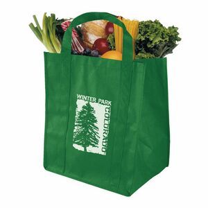 This high-quality non-woven polypropylene grocery bag features two 20-inch handles and a reinforced base, so it can handle all your heavy groceries. This reusable, recyclable bag presents the perfect opportunity to showcase your brand while your customers are browsing through the supermarket.